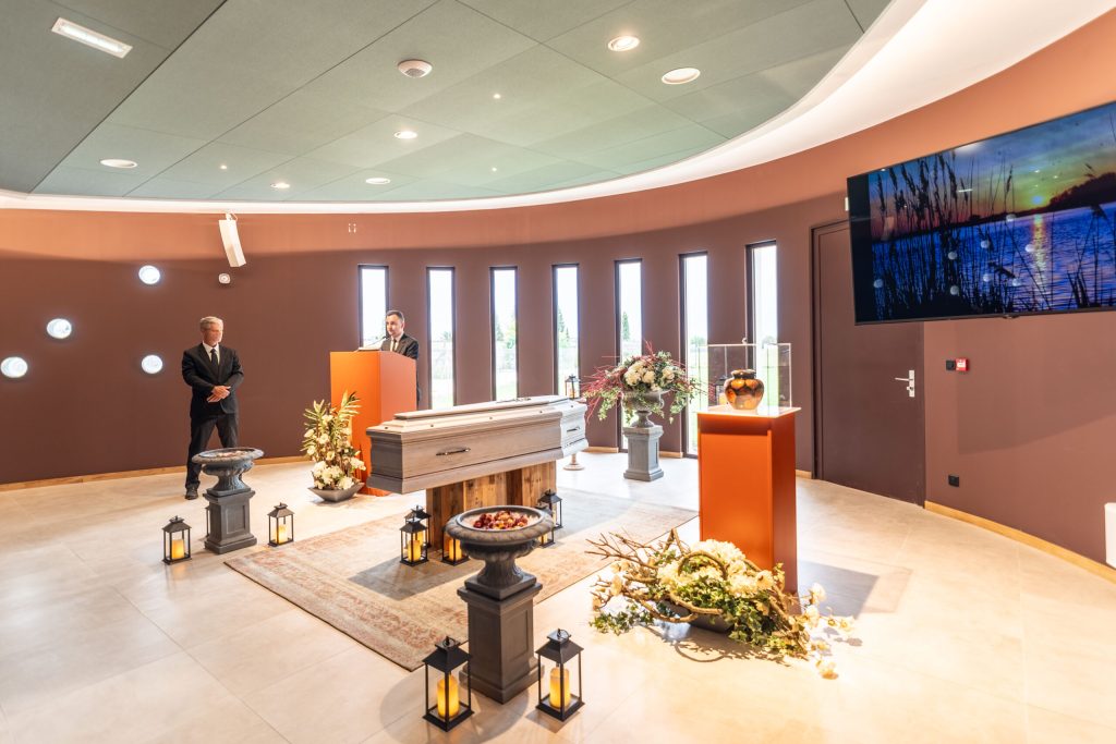 Notre engagement envers le professionnalisme et la sensibilité guide chaque détail de notre salle de cérémonie. Avec une ambiance sereine et accueillante, nous fournissons un cadre propice à la réflexion, à la commémoration et au partage de précieux souvenirs.